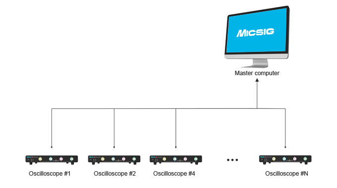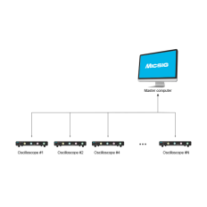 Consiga la cascada de osciloscopio con hasta 16 canales a través del sincronizador MOS4, reduciendo efectivamente el costo de usar osciloscopios multicanal.