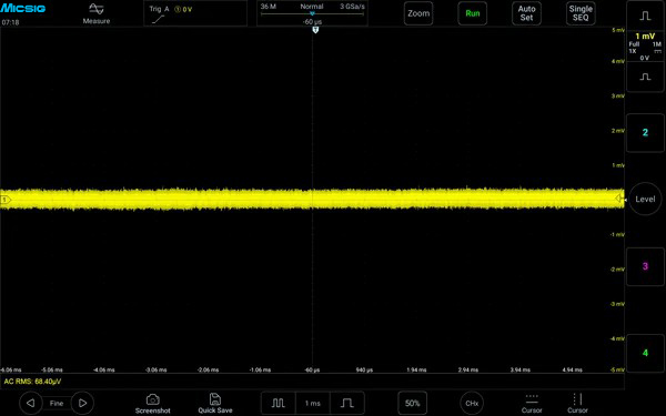 La serie MO3 mantiene un ruido de referencia de menos de 80 μVrms a través del ancho de banda completo de 500MHz, lo que le permite capturar con precisión señales sutiles pero importantes durante los procesos de depuración de circuitos y análisis de señales.
